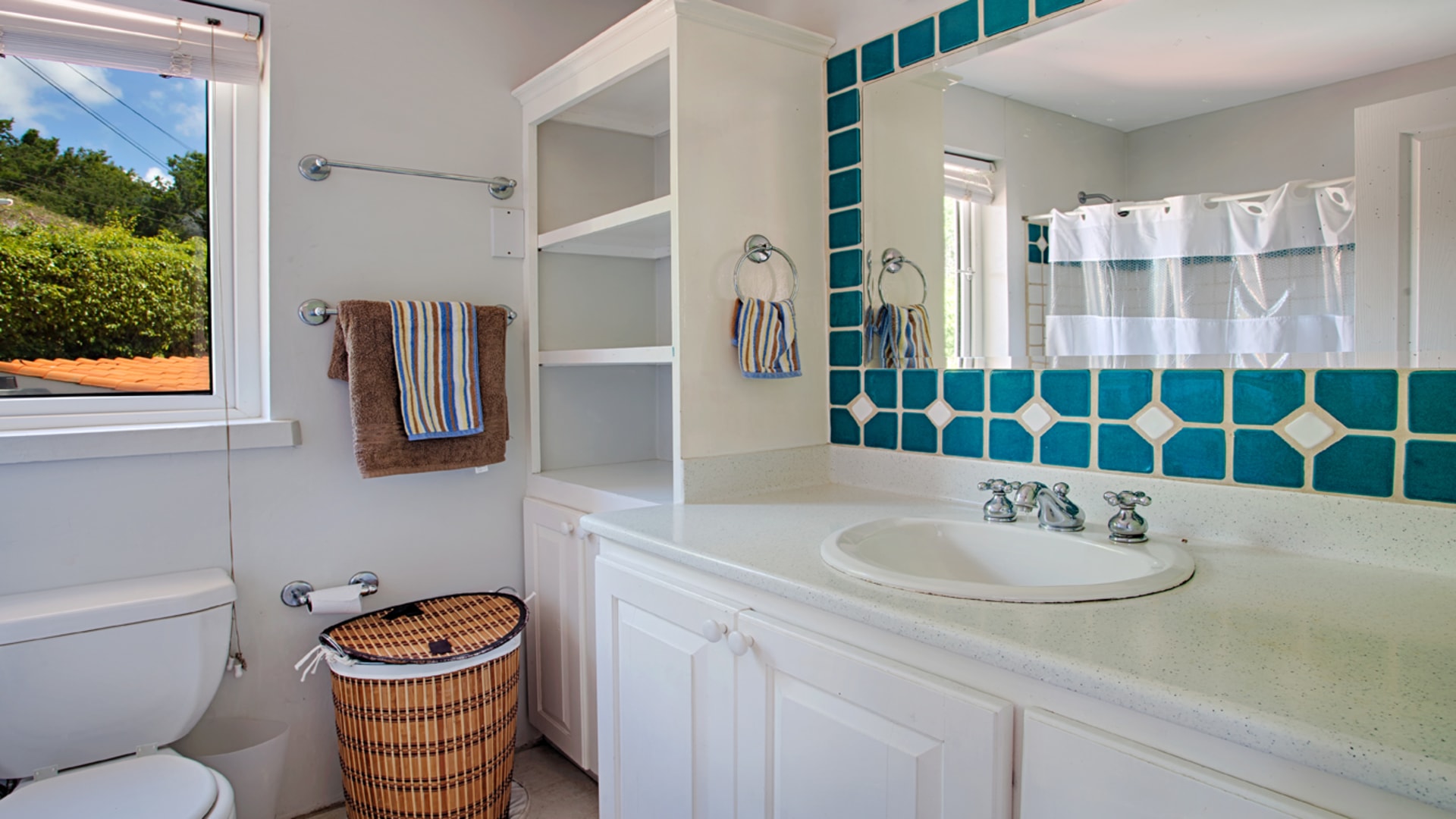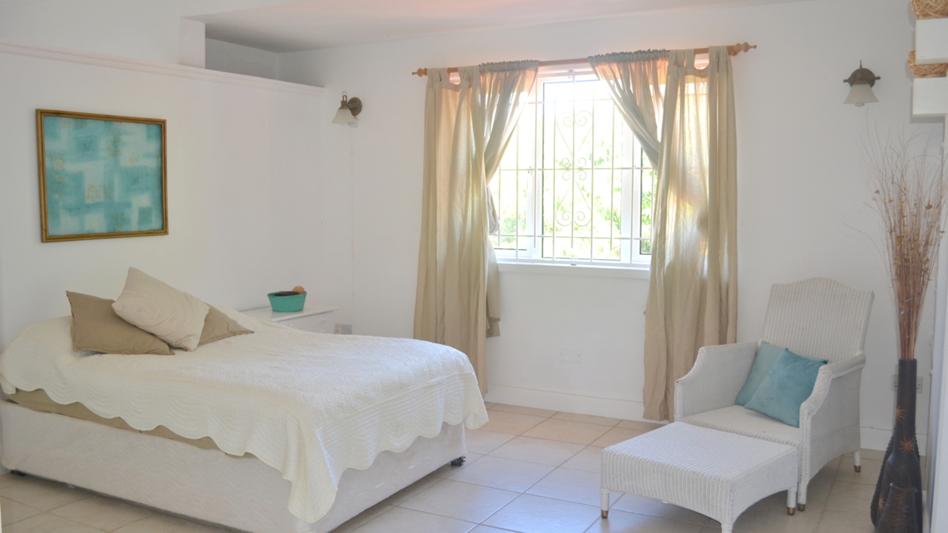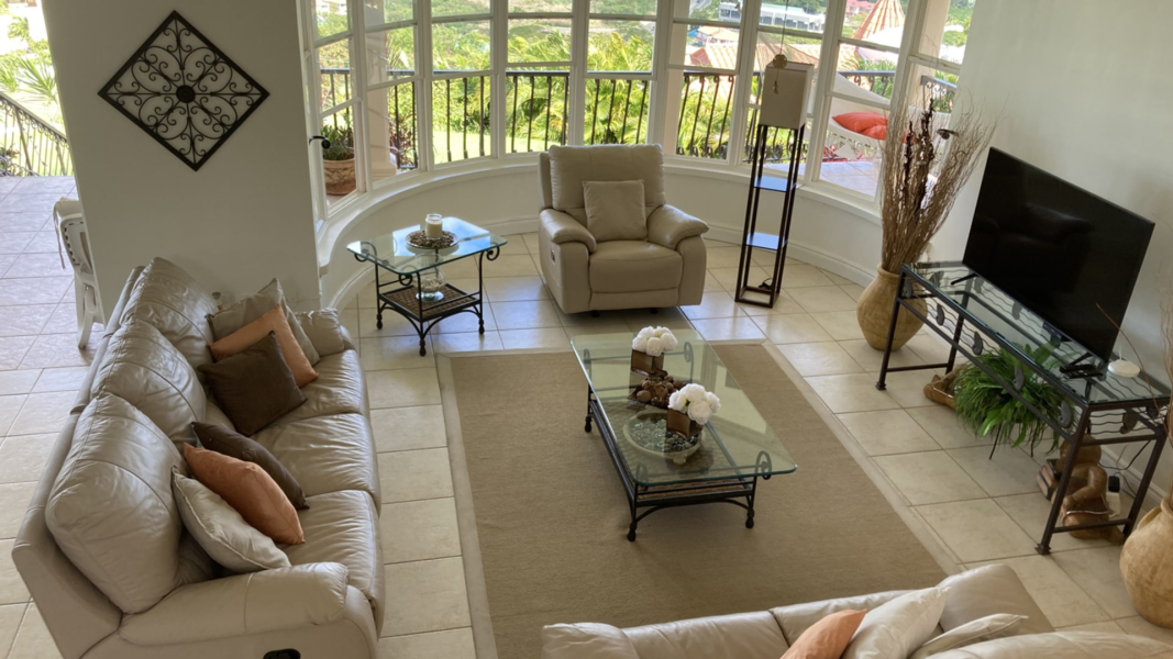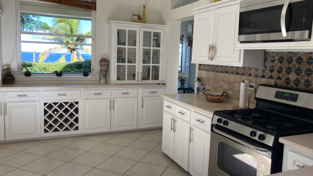 The second floor boasts three air-conditioned bedrooms, each with an ensuite bathroom. The master bedroom, positioned to face north, offers unparalleled views of the ocean and Pigeon Island, making it a serene retreat.