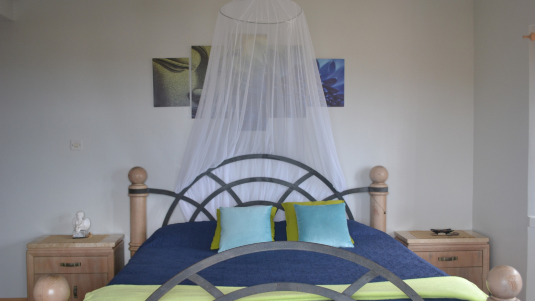 - An air-conditioned bedroom with a double bed.