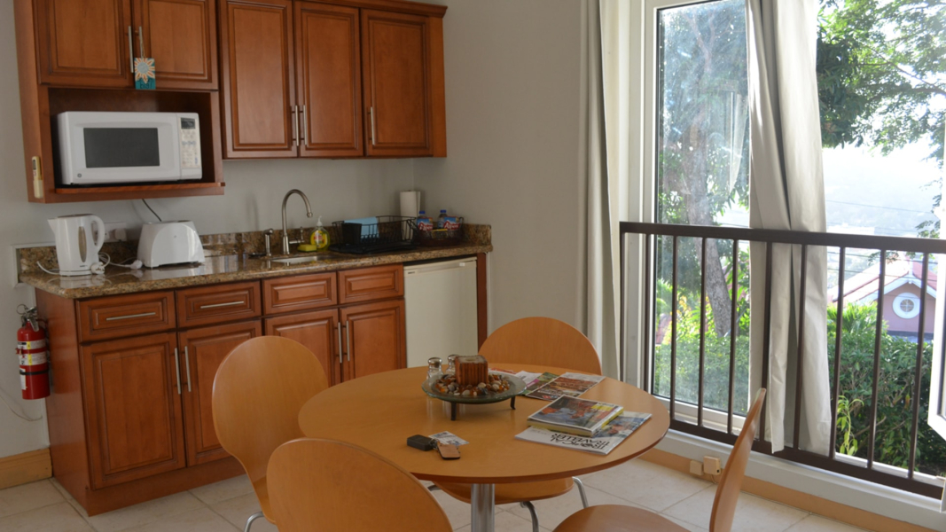 - A compact kitchen and living area.