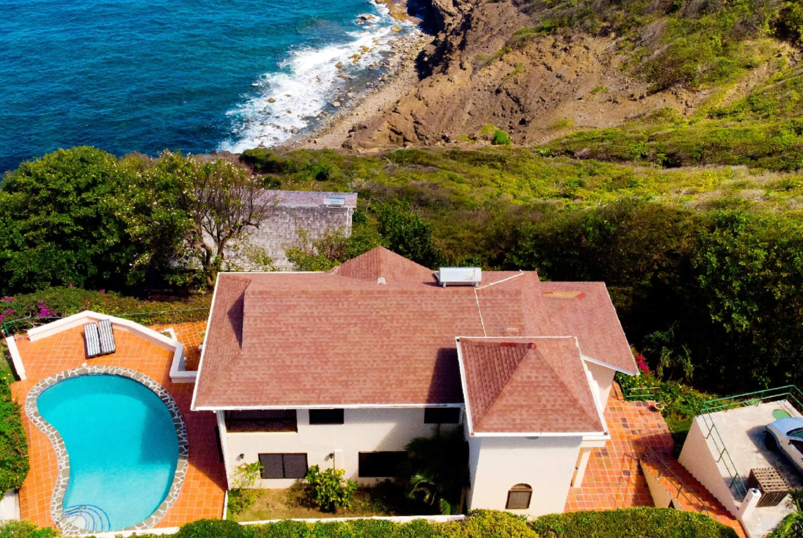 This exquisite cliffside residence, located in the exclusive Cap Estate neighborhood, offers an unparalleled blend of luxury, tranquility, and potential. Commanding breathtaking views of the Atlantic Ocean, the neighboring French island of Martinique, and direct access to the pebbled beach below, this 3,800 sq. ft. Caribbean home is a rare gem.
